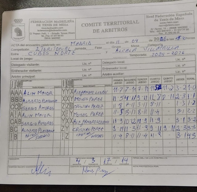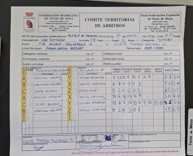 Jornada 18 1ª Territorial (A) FUENCARRAL TM «A» 5 TM ALCALÁ – VILLALBILLA 1 2ª Territorial (B) CUBES NORTE TT 4 TM ALCALÁ – VILLALBILLA A 3 3ª Territorial (B) CLUB NOROESTE-LAS ROZAS «B» 4 TM ALCALÁ – VILLALBILLA «B» 2 3ª Territorial (G) TM ALCALÁ – VILLALBILLA «A» 0 CDETM PROGRESO MOSTOLES «C» 6
